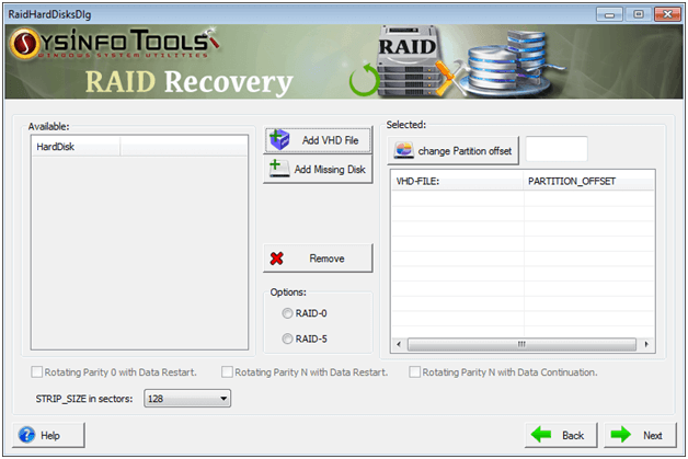RAID Recovery software supports both RAID-5 and RAID-0 levels. Before you can perform the actual recovery, you need to select the RAID level, be it RAID-5 or RAID-0.